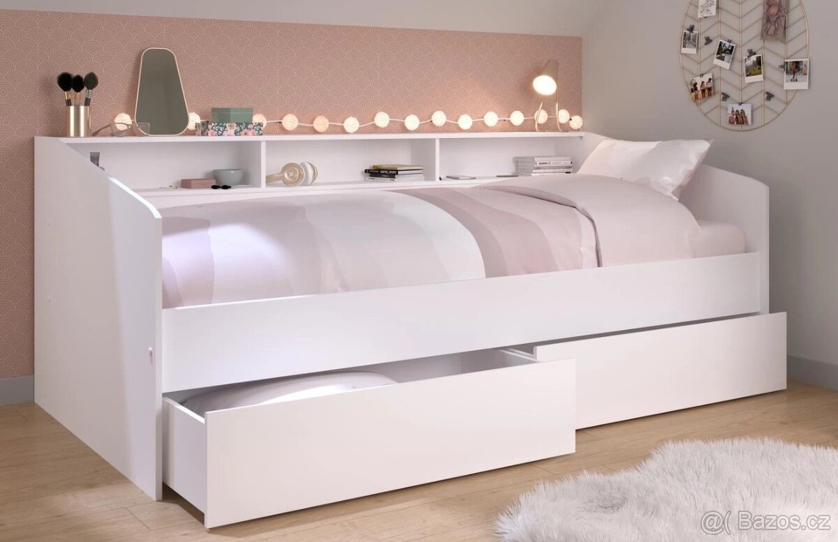 - cena postele se sadou dvou šuplíků, s roštem bez matrace