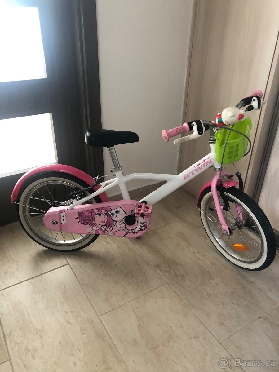 Prodám dětské kolo B’TWIN (Decathlon) Docto Girl 500, velikost kol 16”. Vhodné pro děti cca 4–6 let (výška 105–120 cm).