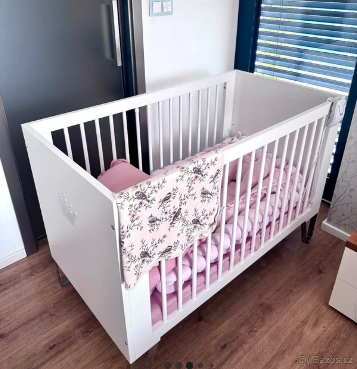 Krasna postylka pro miminko, pouzivana 6 mesicu, neponicena, v top stavu. Na cele stribrna korunka, nerezove nozicky. Rozmer 120x60 cm. Stoji 4300,- nova.moznost predani v Praze v rozlozenem stavu. Zdarma velmi kvalitni matrace do postylky zakoupena v kamenne prodejne Baby centrum. Pouze osobni predani.