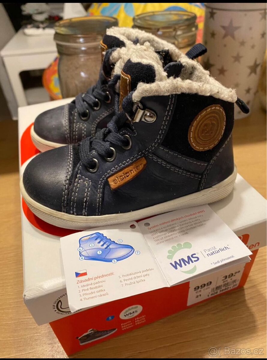 Dětské boty Elefanten, vel.21, délka přírodní stélky 14cm, pevný opatek, bez prošlápnutí, doslova pár hodin na noze.Ještě rok a třičtvrtě záruka, dodám s paragonem. Vhodné jaro, podzim. Čisté, impregnované. Původní cena 999,-, barva tmavě modrá.kůže, takže lehce poškrábané špičky. Na zip, ale i s tkaničkami. Velmi dobrý stav.