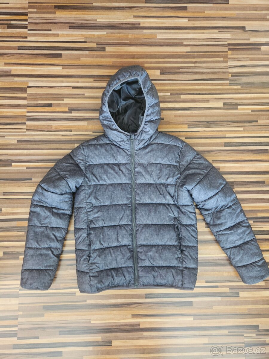 Chlapecká bunda vel. 128 - [26.12. 2025]Lehoučká tmavě šedá bundička, zateplená, ale spíše na mírnou zimu. TOP stav, jako nová. Délka bundy 50cm, délka rukávu od krku 55cm.