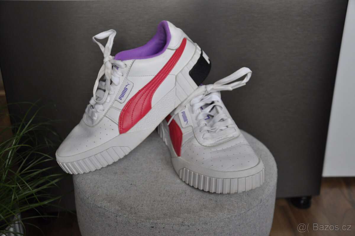 Prodám bílé kožené tenisky zn. Puma vel. 38, velmi pohodlné, barevné detaily, výborně se kombinují.