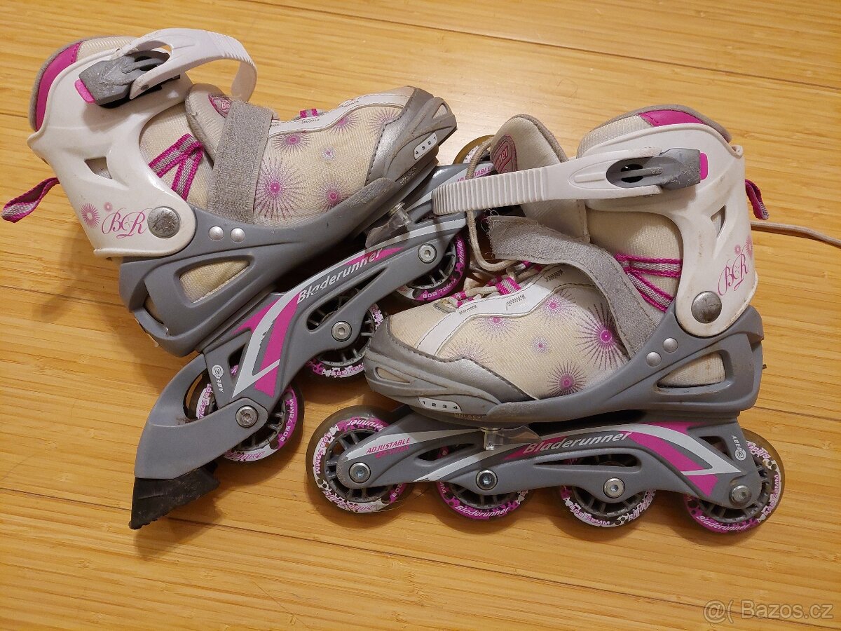 Prodám dívčí rostoucí kolečkové brusle Bladerunner, velikost nastavitelná od 32 do 35. Běžné známky opotřebení, zachovalé.