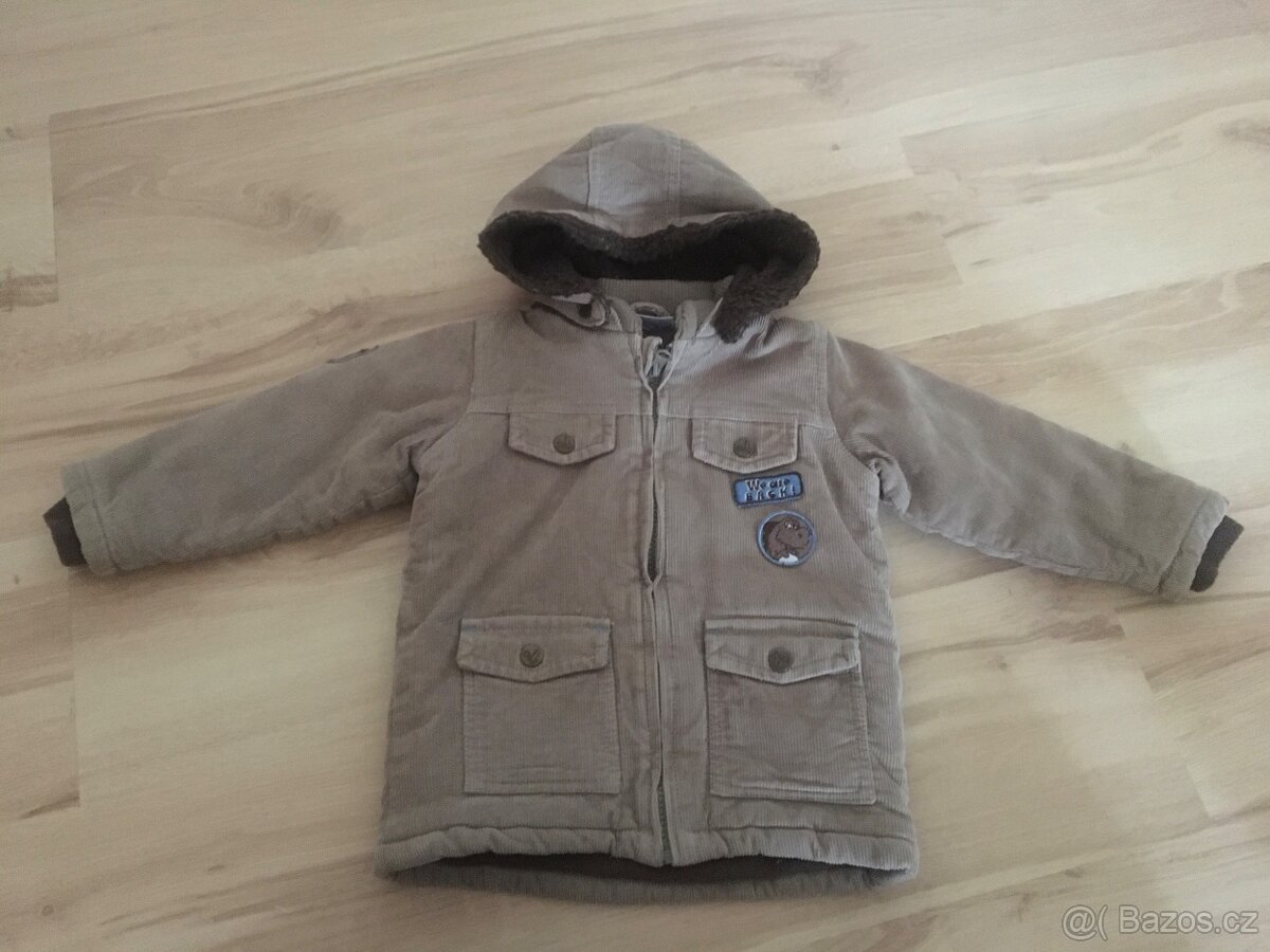 Zimní teplá bunda velikost 92. Šířka 32 cm, délka 40 cm, délka rukávu od krku 37 cm.