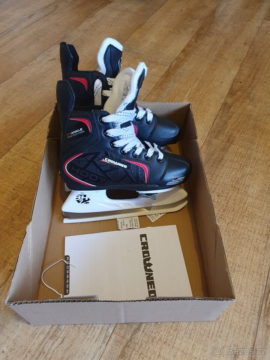 Chlapecké brusle, nastavitelná velikost 32.-35.Stav nových bruslí cca 4x na ledě.