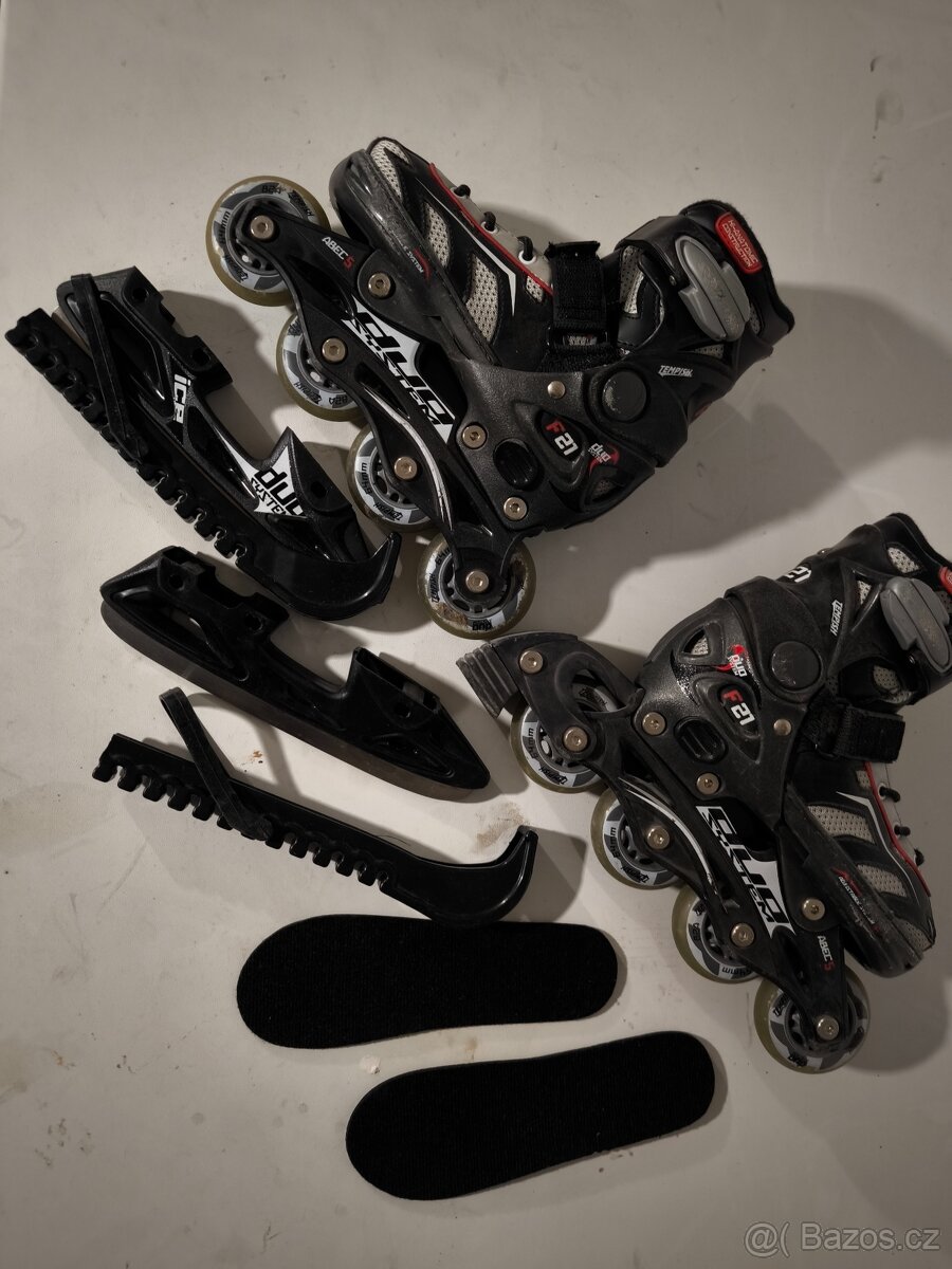 Dětské inline/lední brusle Tempish Clips DUO - [2.1. 2026]Prodám nastavitelné dětské brusle na lední i in-line bruslení velikosti 33-36 EU. Povolením dvou šroubů přeměníte zimní brusle na kolečkové inline brusle. Mám dva páry po dvojčatech.