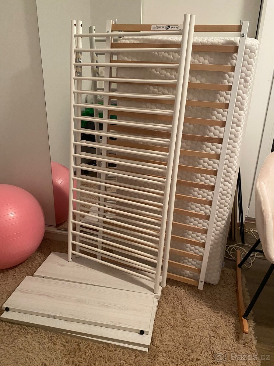Dětská postýlka MYLLRA IKEA +matrace TRÄUMELAND - [2.1. 2026]Prodam postylku, krasna, prvni foto skutecne, Dalsi dve z IKEA, ta nase uz je totiz rozlozena.