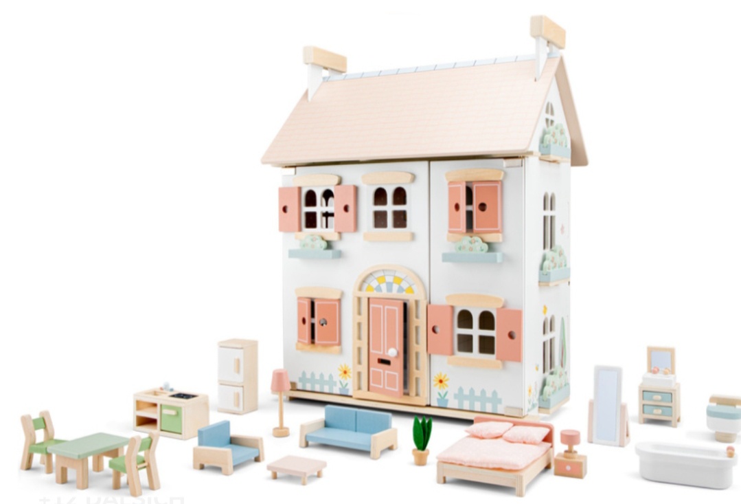 Domeček zve děti do světa plného příběhů, kde každá místnost vyzdobená tapetami a roztomilými ilustracemi vytváří pocit útulného domova. Otevřete dřevěné okenice a nechte do domu proudit vánek, zatímco plně zařízený interiér, který zahrnuje obývací pokoj, kuchyň, ložnici a koupelnu, umožní dětem vytvoření vlastního miniaturního světa. Odnímatelná střecha odkrývá prostornou podkrovní místnost – ideální na rozšíření hry o nové dobrodružství. Střechu je možné dokonce otočit a položit před dům, čímž ji proměníte na krásnou zahradu! Domeček pro panenky podporuje rozvoj sociálních dovedností, motoriky i kreativity. Děti si v něm mohou přehrávat každodenní situace a vytvářet si vlastní svět plný nekonečných příběhů, ať už z reálného života nebo vymyšlených. Vyrobeno ze 100% certifikovaného dřeva FSC® pro bezpečnou a udržitelnou zábavu. Tento domeček se stane pro děti od 3 let milovanou součástí jejich dětství a nabídne jim hodiny zábavy plné fantazie.