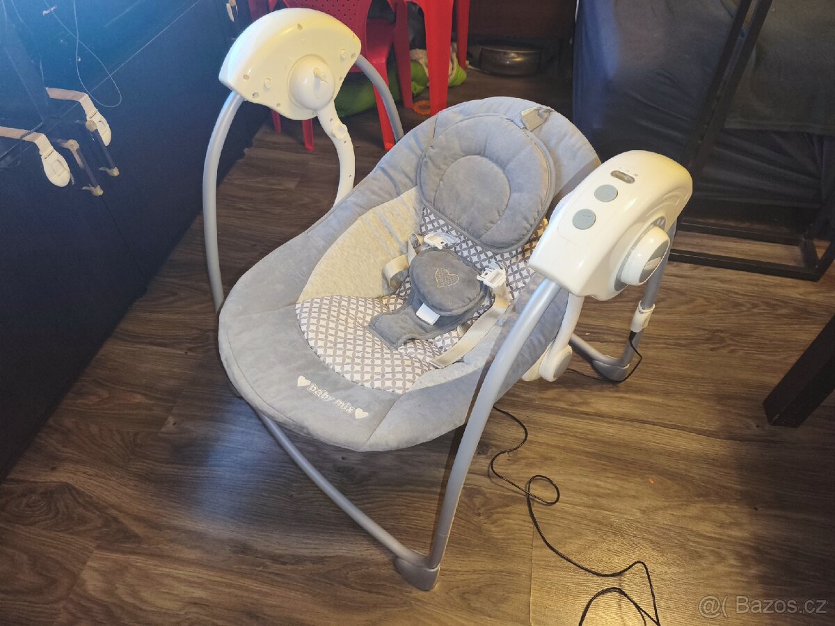 Kolébková houpačka pro batolata. Elektronická - několik stupňů intenzity houpání. Časovač 5/15/30 minut. Hudba na uspávání.