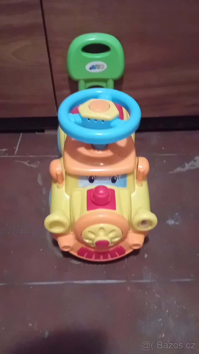 Prodám odrážedlo,které je i na baterky,kdy jsou 3 hrací melodie,pískátko na volantu a další hrací prvky vpředu na mašince.