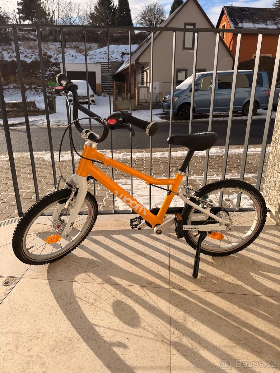 Woom 3 - kolo 16 - [6.1. 2026]Prodám skvělé lehké dětské kolo Woom 3 v dobrém stavu. Kolo je včetně originálního stojánku a blatníků.