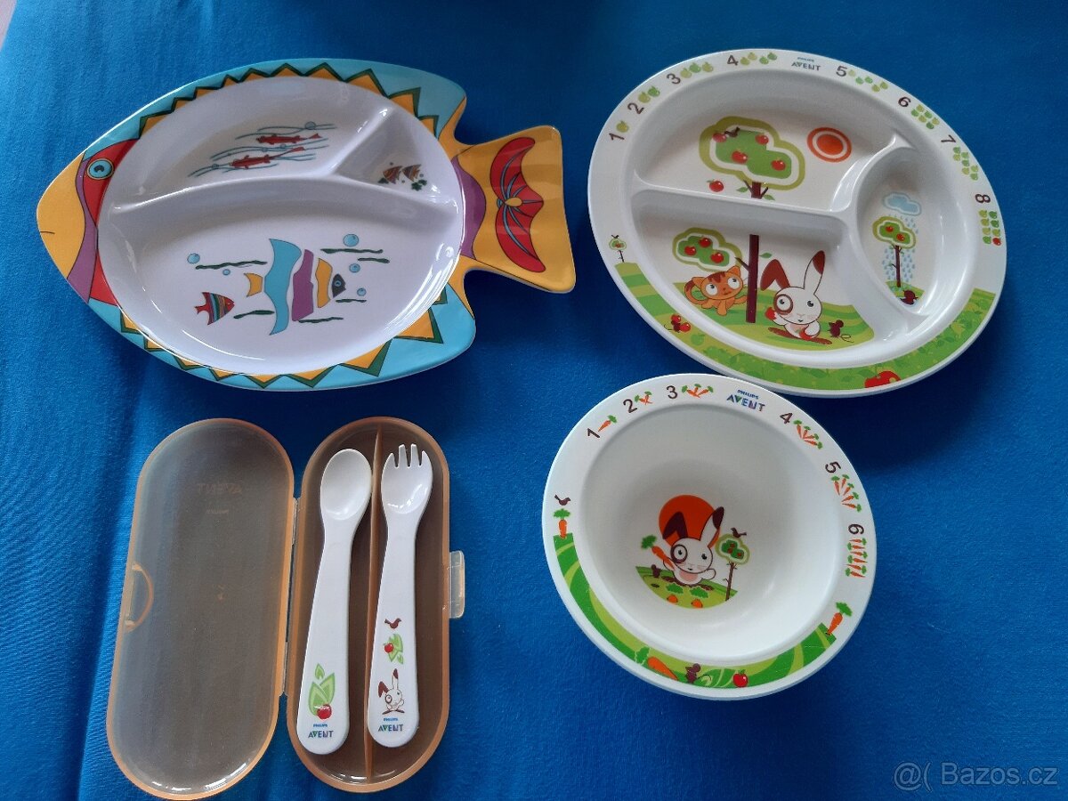 Prodám talíř, misku a příbory od značky Avent.