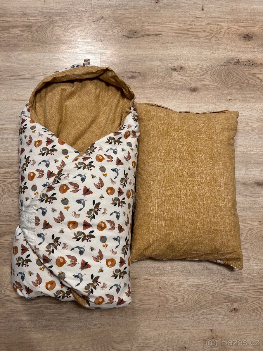 Prodám krásný dětský set 4v1 MAXI DRÁČEK v designu podzimní zvířátka – skořice od značky Kiedroňová.