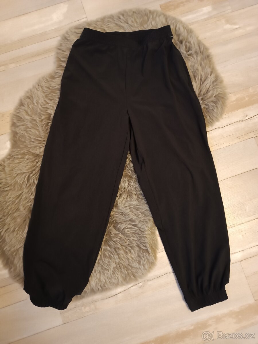 Mírně pružné, pohodlné kalhoty na tanec, volný čas. Velikost přibližně 10-11 let, míry: pas 30 cm (max. natažení 40 cm), délka 89, délka od rozkroku 62. Jako nové, nošené minimálně.