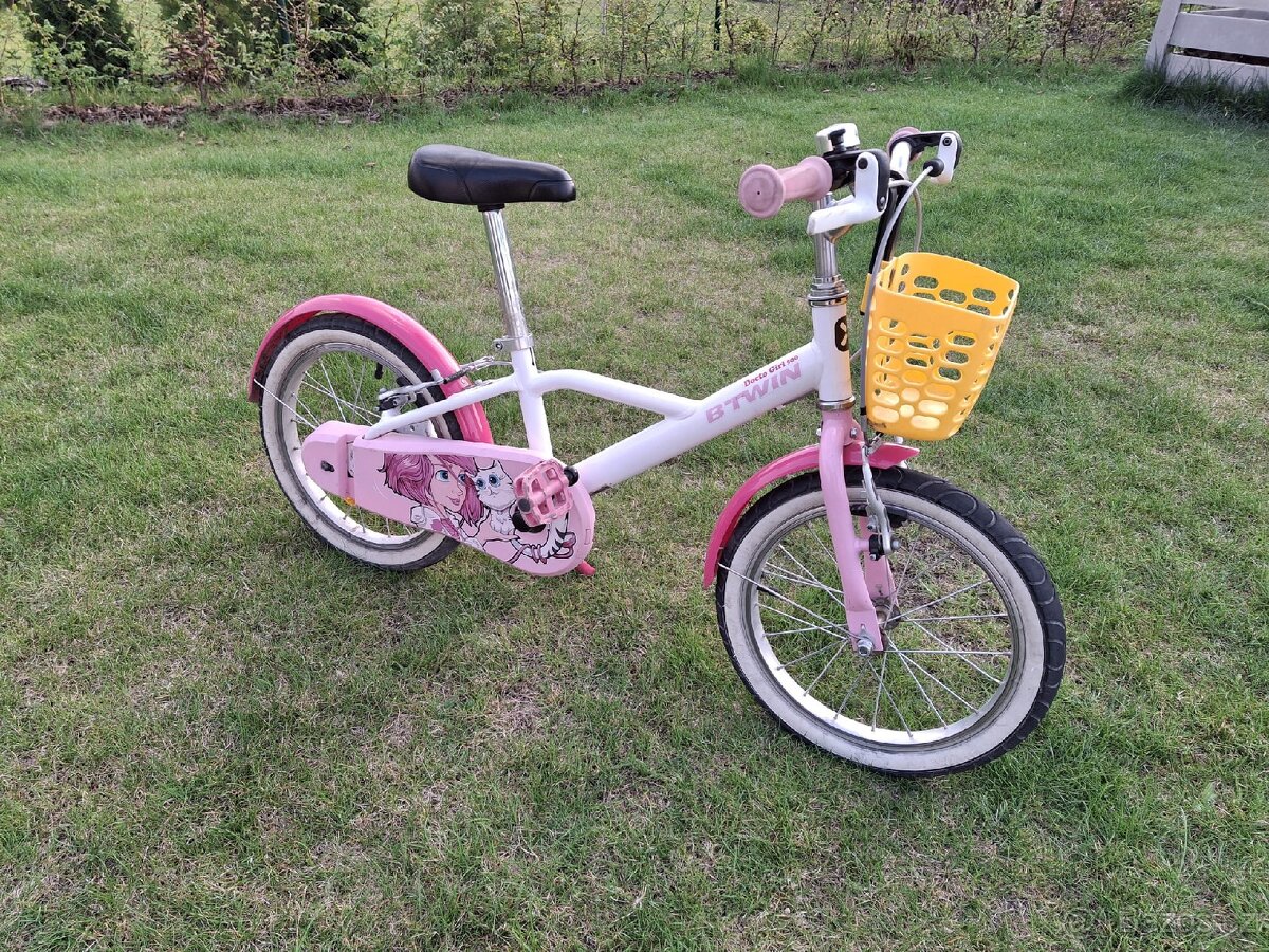 Dětské kolo btwin Doctogirl 500, velikost 16", s košíkem. V dobrém stavu, jen běžné opotřebení. K vyzvednutí v Ovčárech u Kolína.