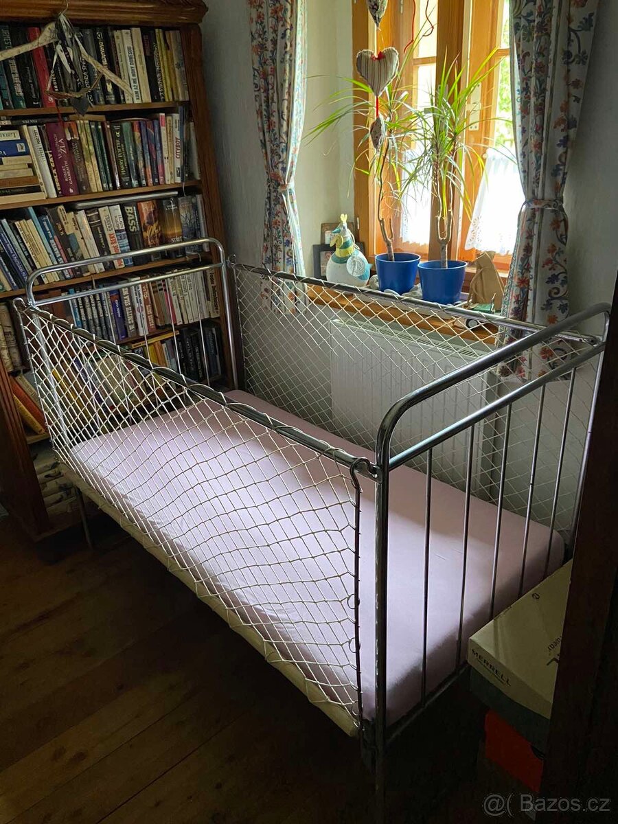 Kovová postylka - [5.2. 2026]Dětská kovová postýlka v retro stylu s madraci, dvě polohy otvírání (vui. foto). Osobní odběr, případná možnost domluvy dopravy.