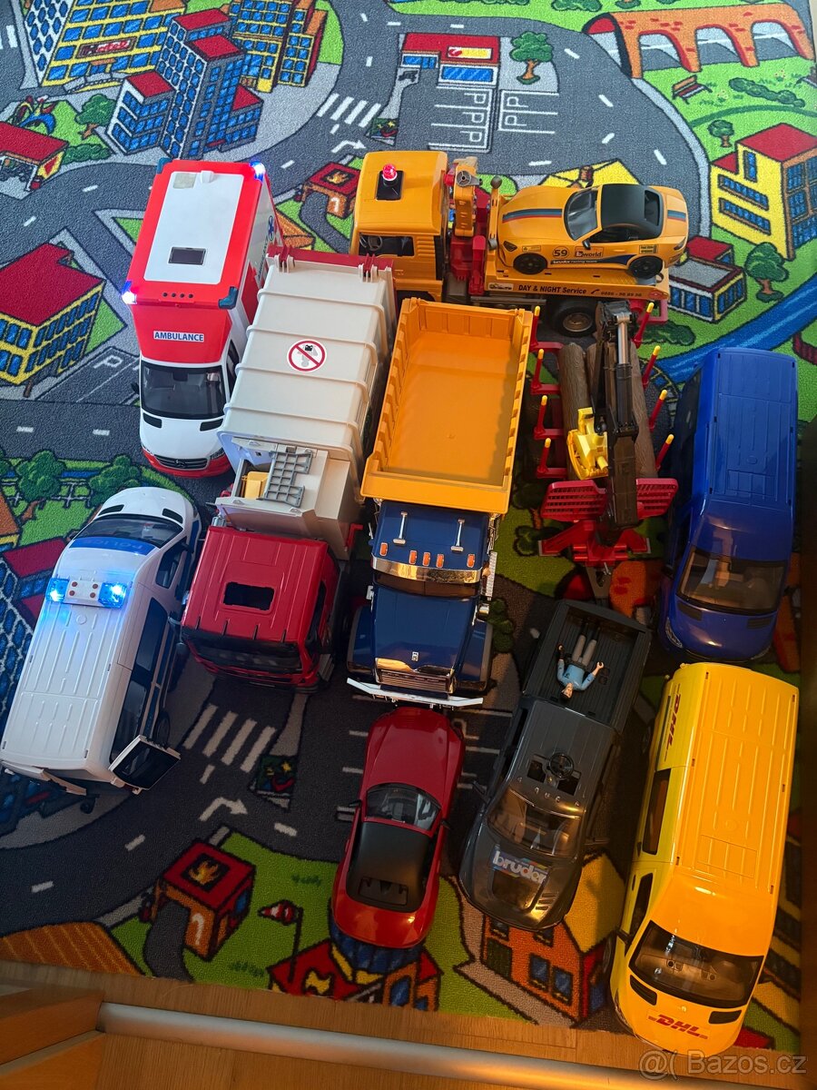 Modra dodávka a sanitka jsou více hraná, jinak bych řekla, že stav super. Vše co je na fotu jako komplet. Vše Bruder. Zvuky a světla fungují👍🏻