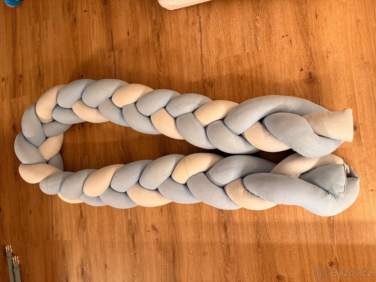 Mantinel na postýlku - [17.2. 2026]Mantinel na postýlku je v rozměrech : výška 30 x délka 180cm. Výplň je plněna měkkým, polyesterovým, silikonovým vláknem o 300g/m2. Přichycení na mašle. Nový, nerozbalený.
