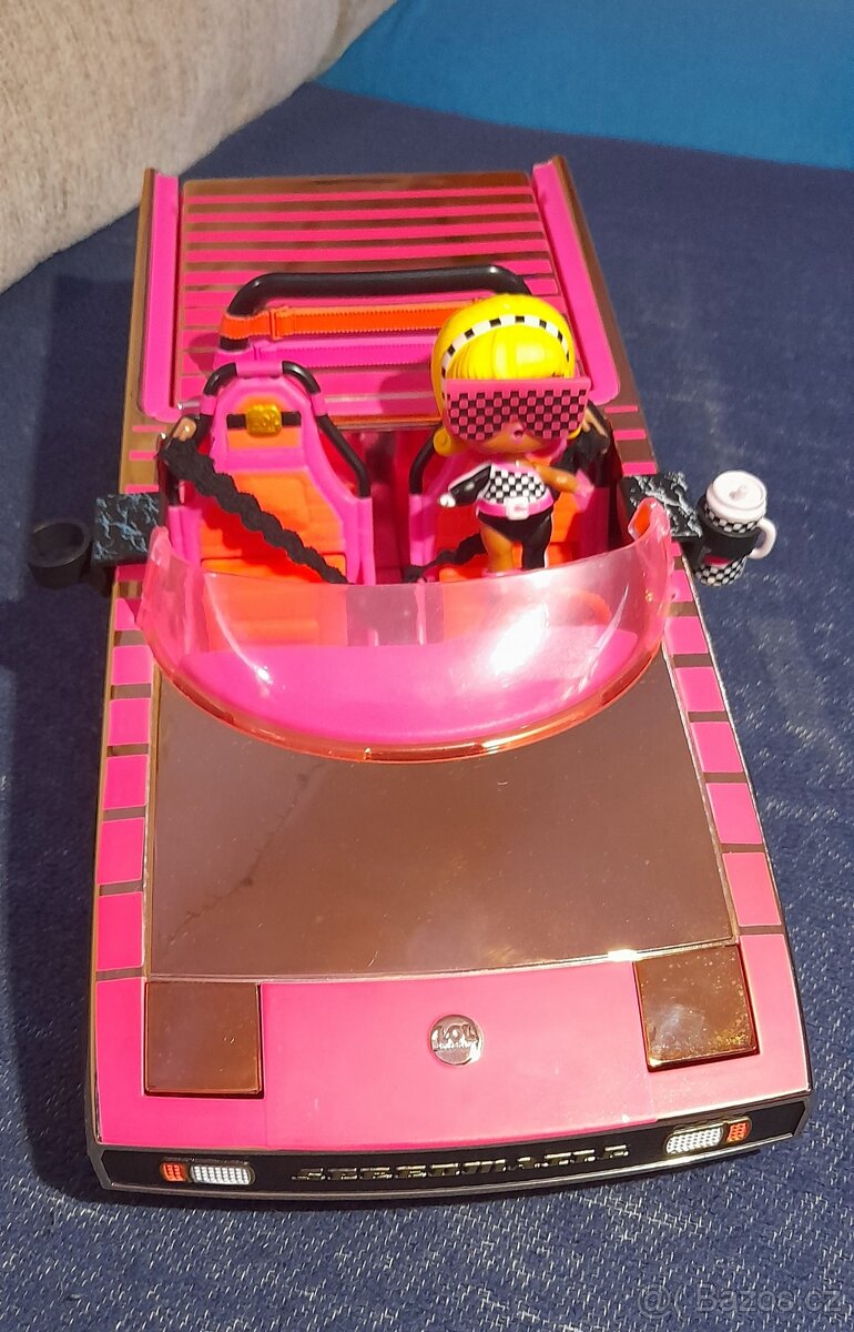 Prodám LOL krásné růžovo zlaté párty auto s bazénem i panenkou. Autu svítí neonově světla. Má taneční parket a bazén. Držák na pití a klíč.
