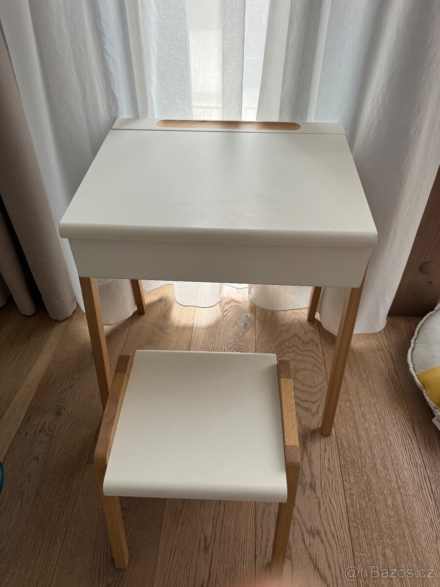 Dětský bílý psací stul - [27.12. 2025]Hezky používaný stav, dva šuplíky, vc židličky, také ikea, osobní odber