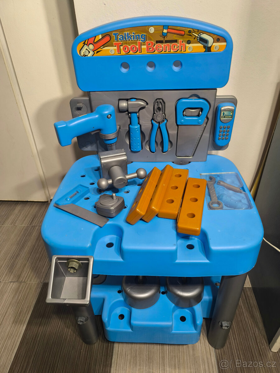 Prodám dětský dílenský ponk . Telefon vyzvání a mluví. Rozměry – výška 90 cm, šířka 40 cm, délka 50 cm.