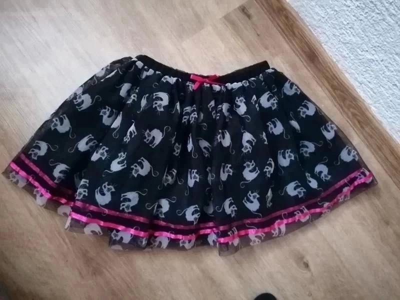 Moc hezká sukýnka se vzory kočiček velikost 122 cena 150kc, bohatá sukynka