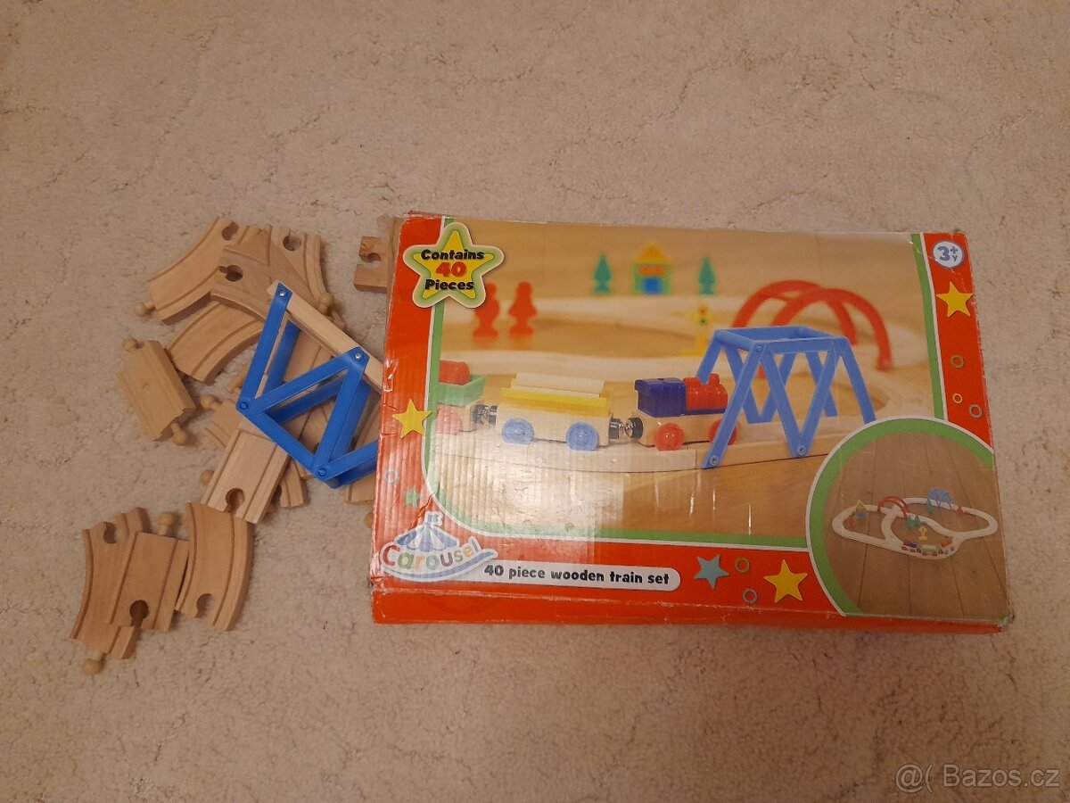 Prodám dřevěné koleje + vagónky. Vše originál, nezničené. Děti si s nimi moc rády hrály, když byly menší.