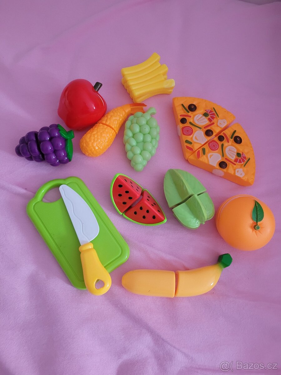- ovoce a jídlo na suchý zip s prkénko a nozíčkem, cena 130Kč