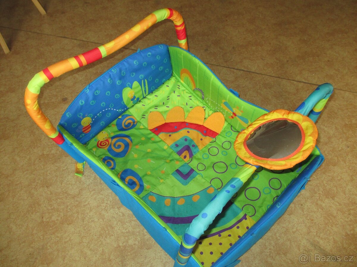 Prodám hrací ohrádku 80 x 60 cm, výška 45 cm. Materiál textil, uvnitř vyztužená plastem, suché zipy. Plastové desky se dají vyndat a látková část se dá prát.Úchyty jsou vyndavací. Oranžové vlnky na dně chrastí. Vše je vyprané. Dá se poslat jako větší balík např. zásilkovnou za 120 Kč.