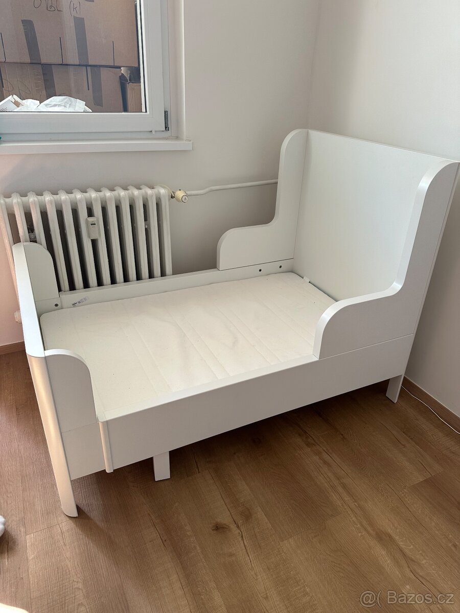 Prodám dětskou výsuvnou (rostoucí) postel IKEA BUSUNGE, bílou, včetně matrace.