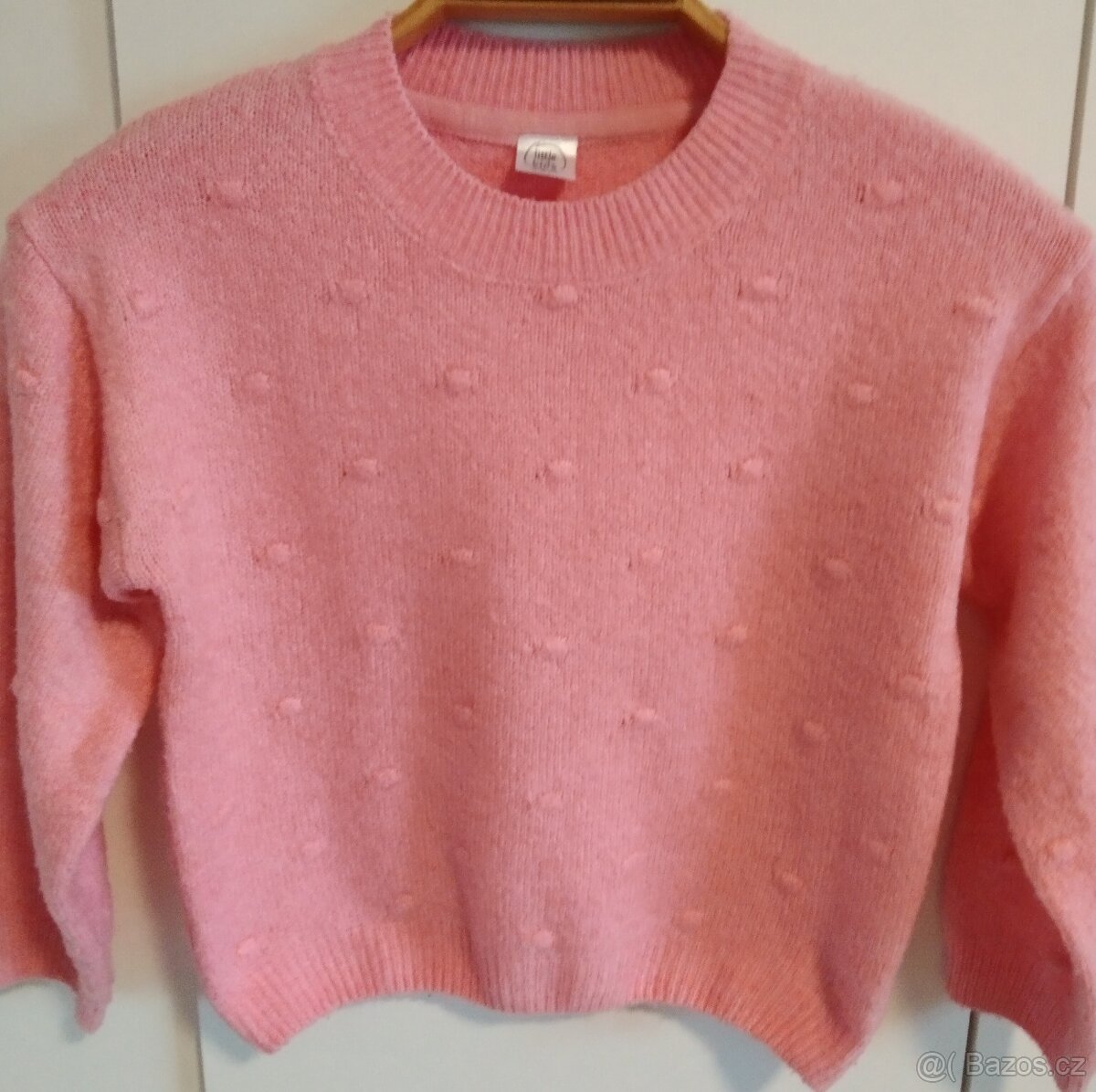 Dívčí svetr 134 - [2.2. 2026]Délka 47 cm., šířka 40 cm., délka rukávu od ramene 53 cm., délka rukávu pod průramky 41 cm., Cena 60 Kč.