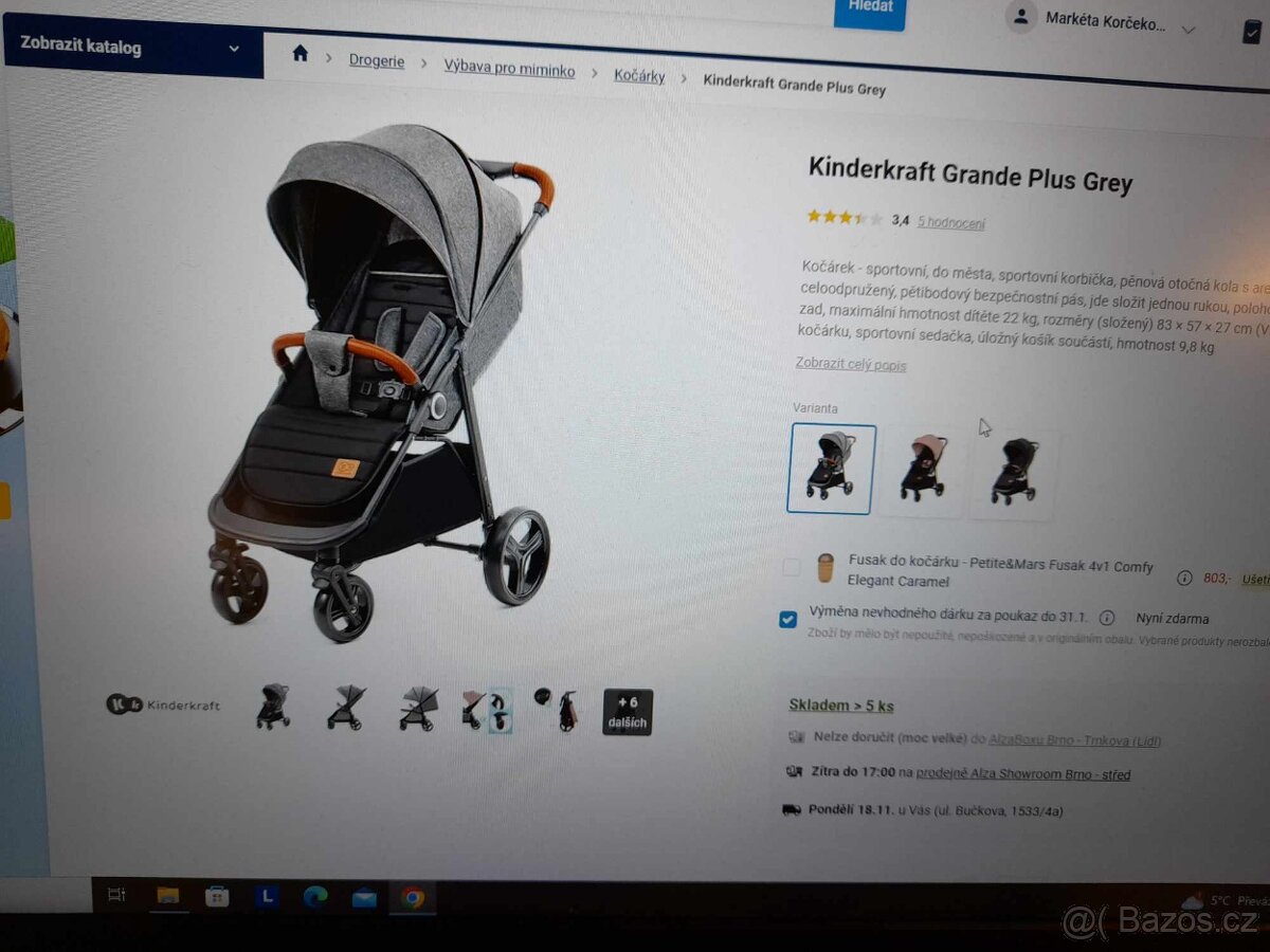 Kočárek Kinderkraft Grande Plus Grey, úplně nový nepoužitý, nevyužili jsme. Ještě zabalený.