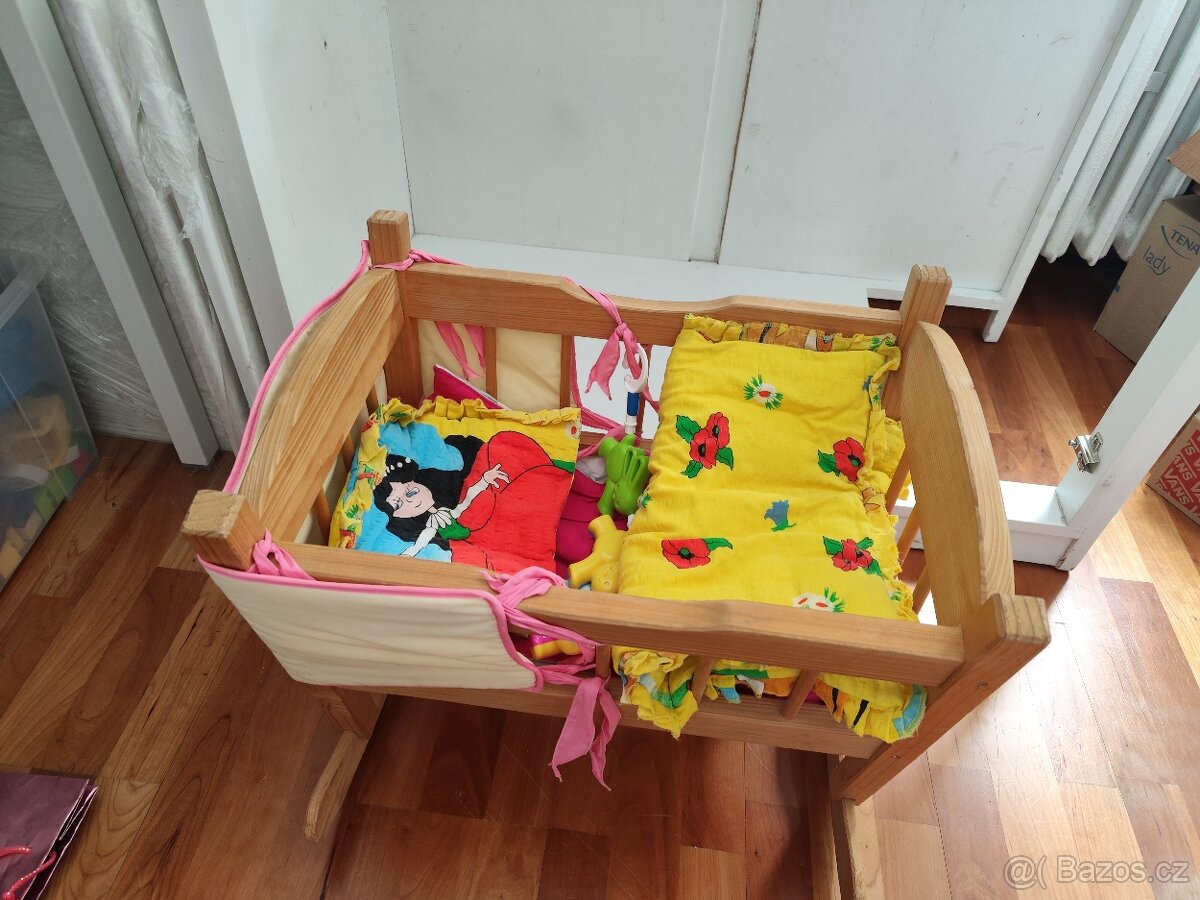 Dřevěná kolébka pro panenky - [2.2. 2026]Prodám dřevěnou kolébku pro panenky s proutěným košíčkem pocházející z 80. let minulého století. V košíčku je možno panenky i „uspat“ houpáním. Kolébka je nabízena včetně panenky, matrace, polštářku a přikrývky.
