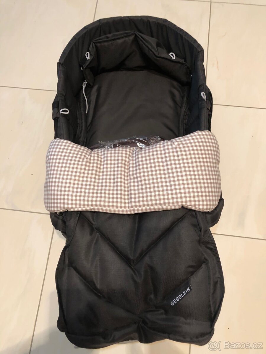 Gesslein vlozna taska na miminko C1lift, nahrazuje korbicku, je bohuzel nevyuzita meli jsme na konec korbicku, barva hodne tmave hneda az cerna, tato taska se da rozlozit i na pytel fusak do sportaku, PC: 4990,-kc nyni 3000,- kc,