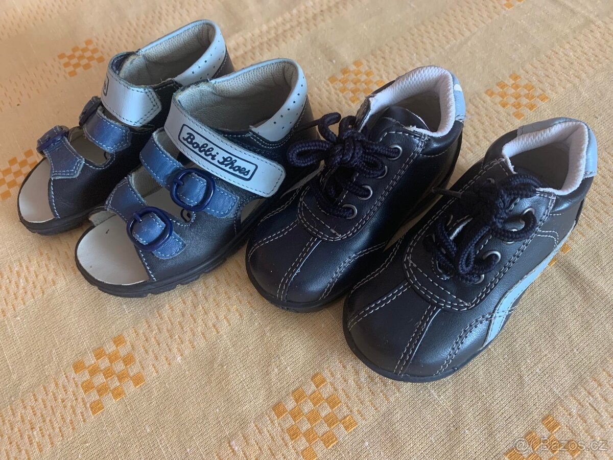 Sandálky velikost 22, kotníkové 19. Cena za oba páry.