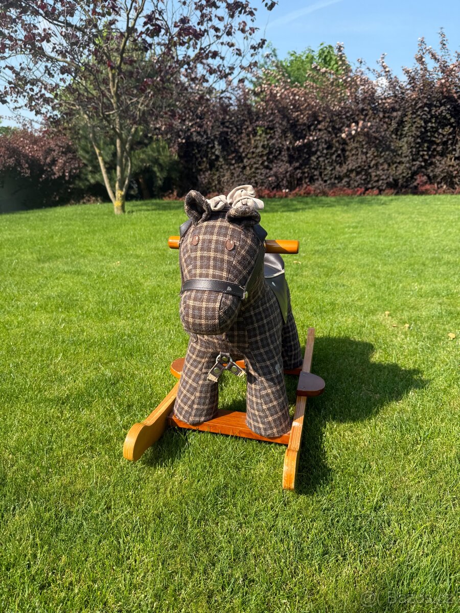 Houpací 🐎 kůň - [31.1. 2026]Hnědý houpací koník, který vydává zvuky při stlačení jednoho nebo druhého ouška.