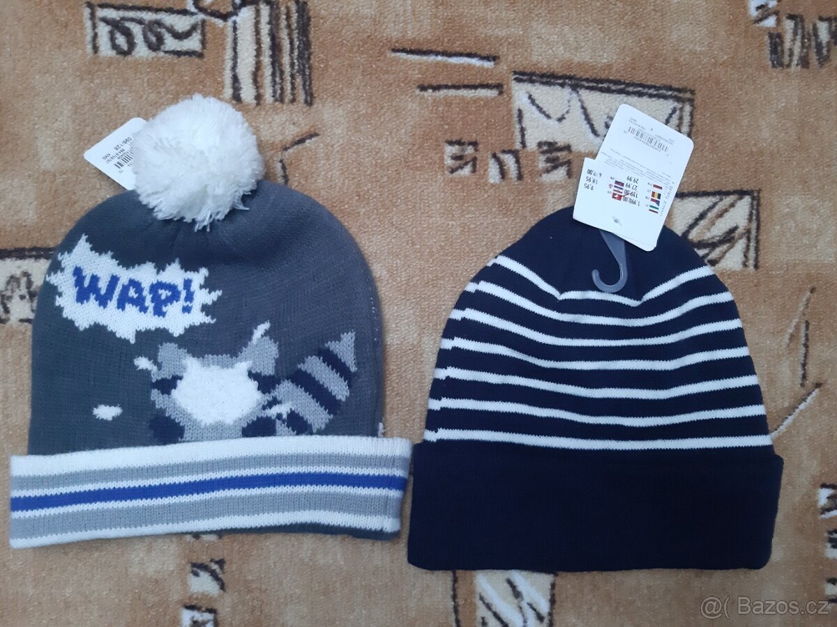 Prodám nové čepice, obě zakoupené v Takko, šedá vel.uvedena 2-8 let, modrá s pruhy je hodně pružná dle mého 4-12 let, cena za kus. Pruhovaná prodána