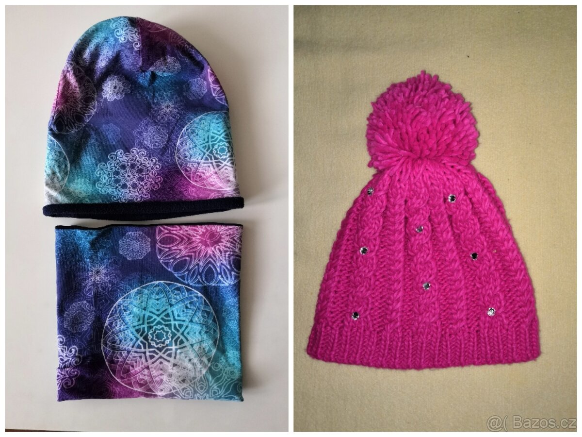 1. Zimní set čepice a nákrčníku motiv mandala (zn. Sedmé nebe), zateplené tmavě modrým flísem, top stav, vel. 52 ( 4-7 let) - 250, - Kč.