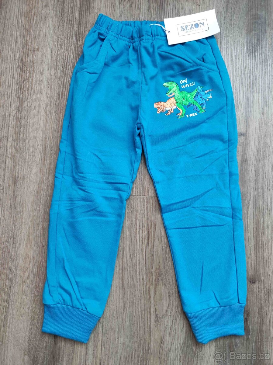 Chlapecké tepláky s dinosaury, s auty (policie, hasiči), s letadly, zn. Sezon