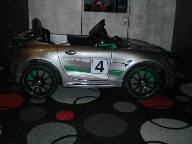 Prodám dětské elektrické autíčko Mercedes AMG, úplně nová baterie, ve velmi pěkném a zachovalém stavu, vydává zvuky, bez dálkového ovládání.