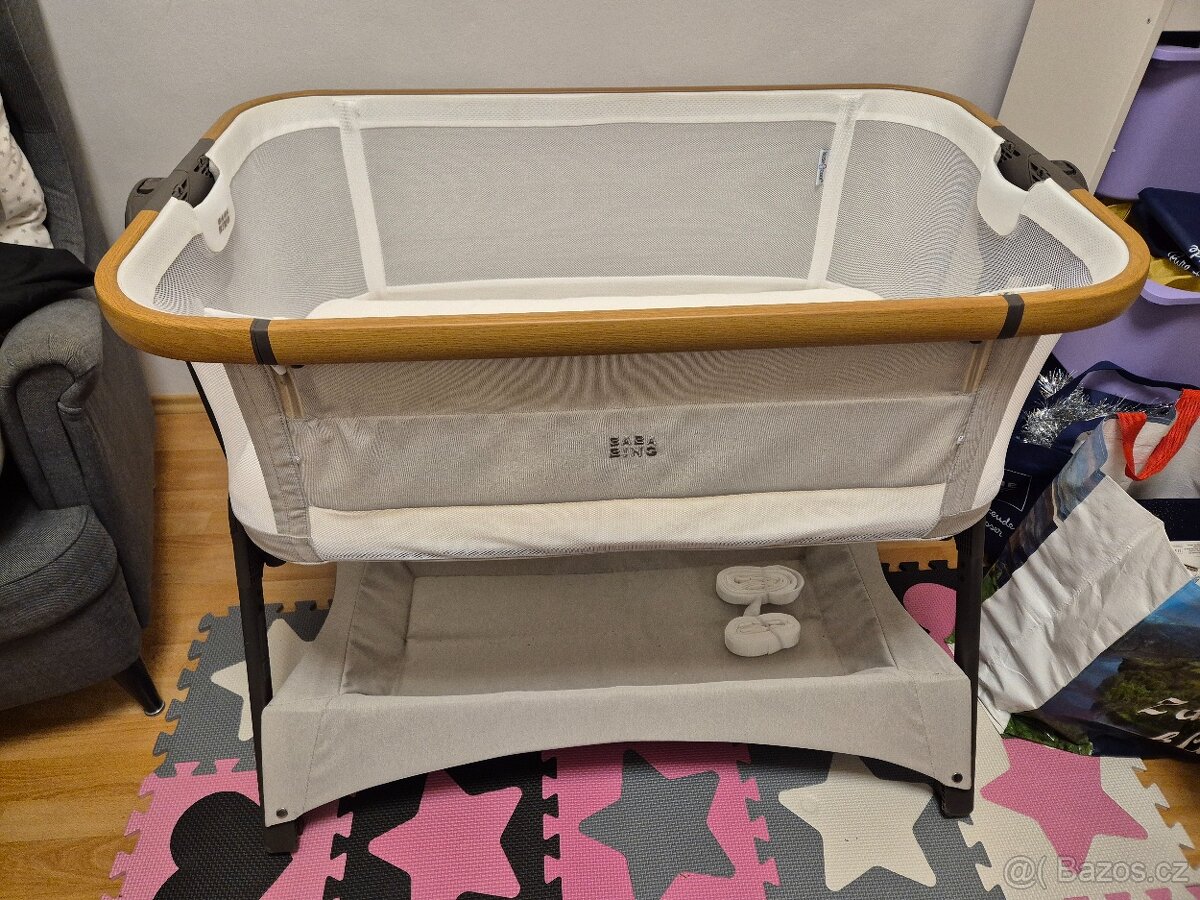 • postýlka 2v1, snadné složení, na kolečkách. které Ize zamknout • 5 nastavitelných výšek pro kompatibilitu s většinou postelí