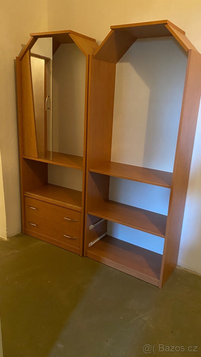 Na fotografii jsou dveře a zásuvky demontované, ale obě skříně jsou komplet.