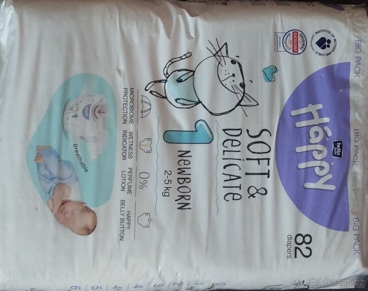 Prodám plenky Happy New Born 82 ks v balení.Balení je nové nepoužité.Pouze osobní odběr v Českém Dubu.