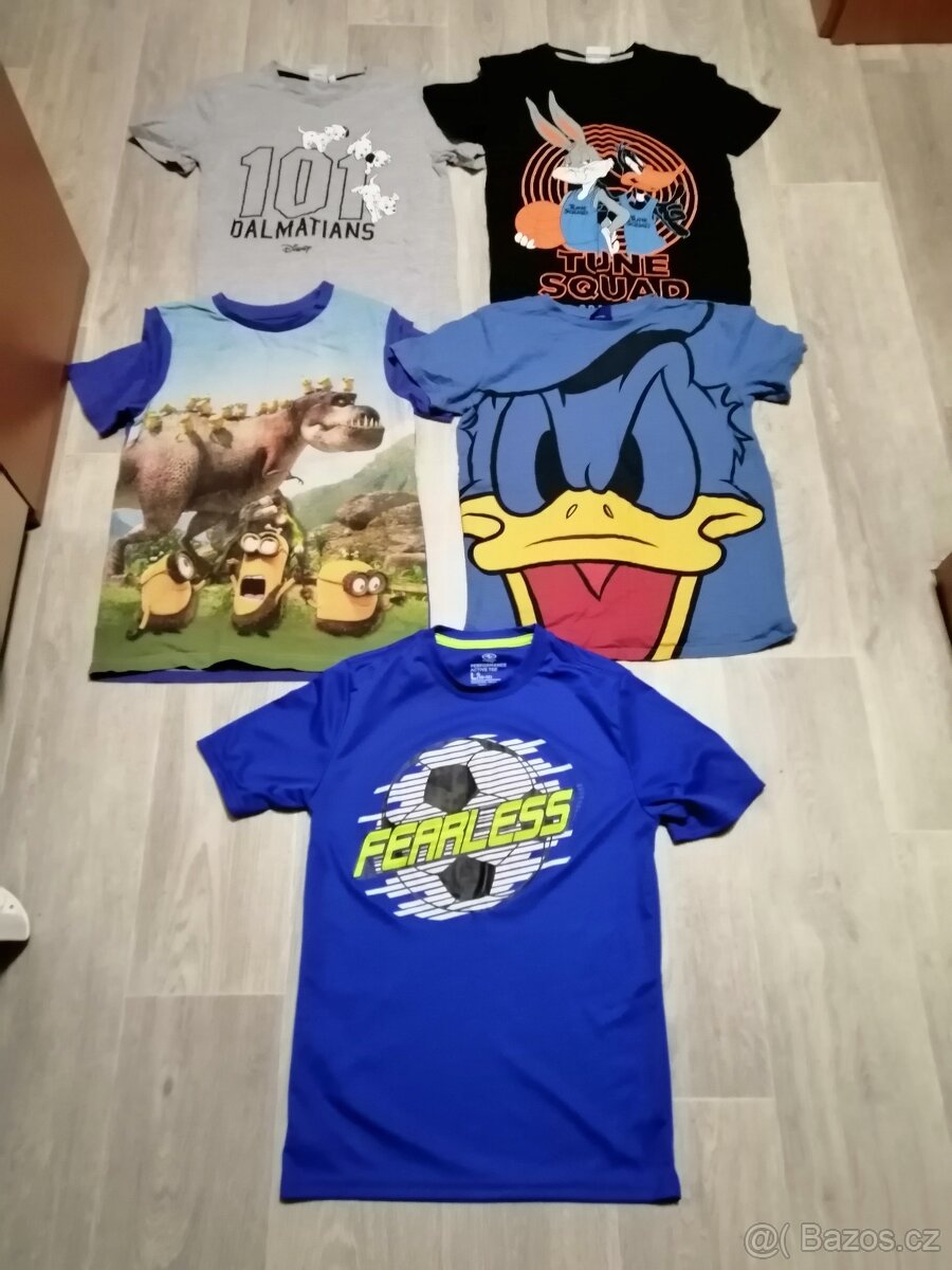 Prodám trika vel. 146 až 152 kus za 50kc.Pyžamo vel. 146-152 cena 90kc.Mozno i jednotlivě trika dl. rukáv kus 50kc a kalhoty 60kc.Sortky vel. 134-140 cena 40kc.Šála 60kc. Sala nová cena 70kč. Plavky pikacu vel. 134-140 cena 50kč.Modro červené vel. 140-146 cena 50kc. S dino vel. 134-140 cena 50kc.Tílka modrá vel. 146-152,s obr. 152, černá vel. 158 cena za kus 40kč. Mikiny první foto 146-152 cena za kus 60kč. Druhé foto 152-158 cena modrá 80kc, vesta 90kč, modrá světla hunata 160kc.Treti foto vel. 164 cena za kus 60kc.