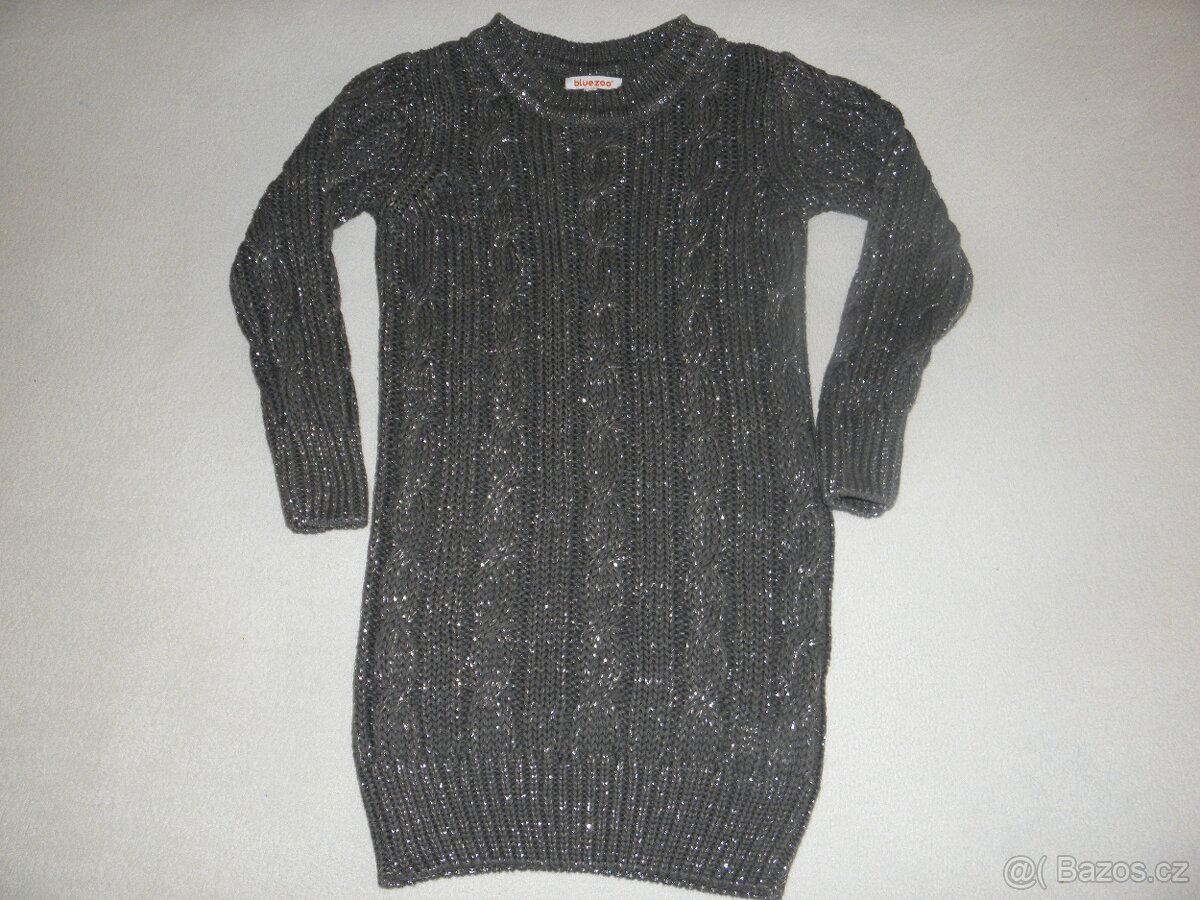 Prodám dívčí delší svetr zn. Bluezoo vel.128. Barva tmavě šedá, protkán třpytivou nitkou. Oblečen 2x, je ve velmi krásném stavu, téměř jako nový.
