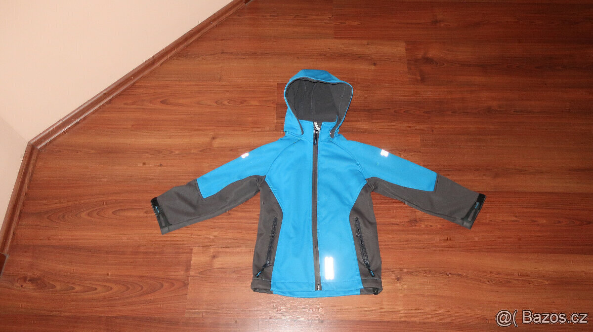Prodám dětskou softsheelovou bundu vel. 120, barva modrošedá. Bunda má reflexní prvky,je podšitá fleecem,voděodolná,paropropustná,kapuce lze odepnout(cvoky).Moc pěkný stav.