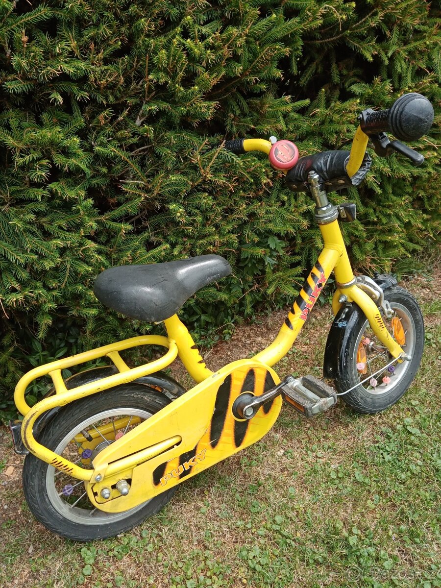 Prodám dětské kolo velikosti 12" značky PUKY. Zcela funkční, jen je potřeba vyměnit 1 pneumatiku včetně duše.