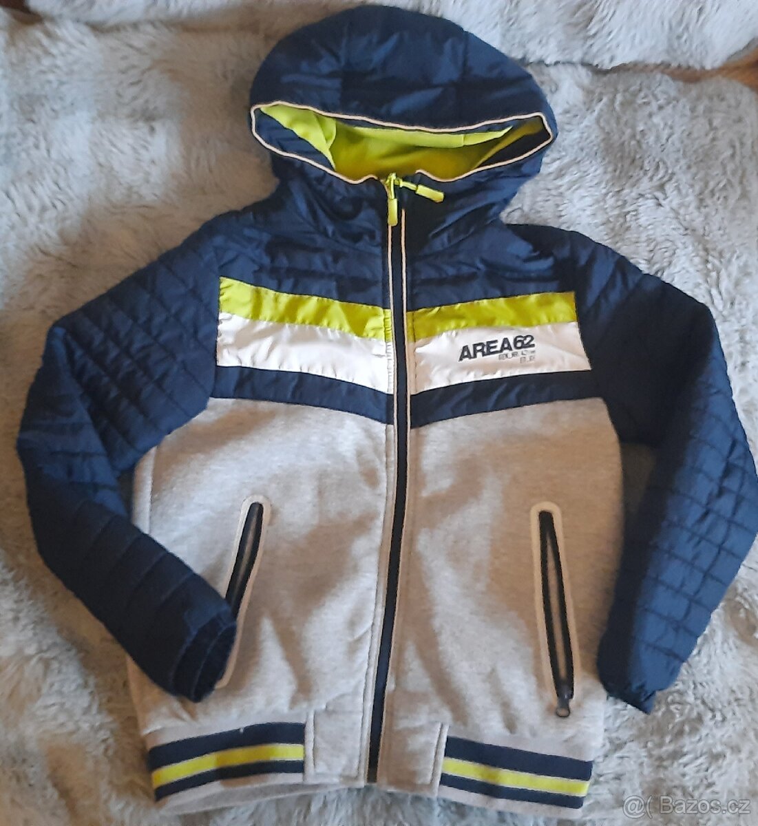 Prodám málo nošenou přechodovou bundu vel. 134/140, v pěkném stavu, délka 53 cm, šířka 45 cm, rukáv 47 cm.