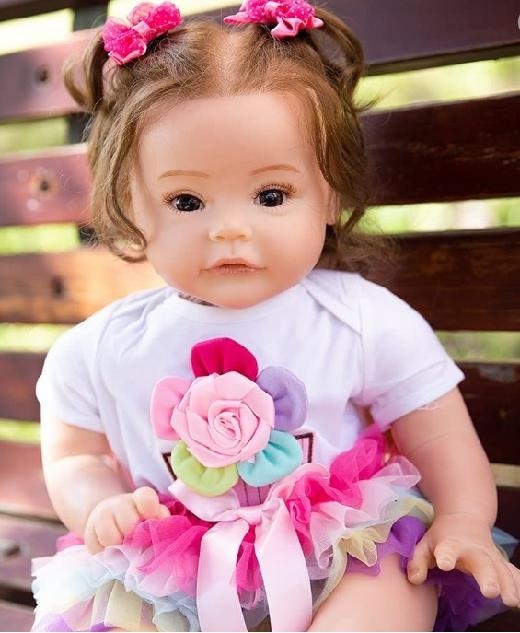 Prodám roztomilou panenku s vlásky, řasami, jako živou, reborn, délka 58 cm. Materiál silikon, tělo z bavlny, ruční práce. S lahvičkou, dudlíkem (s magnetem), oblečkem, plínkou, rodným listem na vyplnění. Nová, nehraná, originál zabalená. Odpovědi prosím písemně.