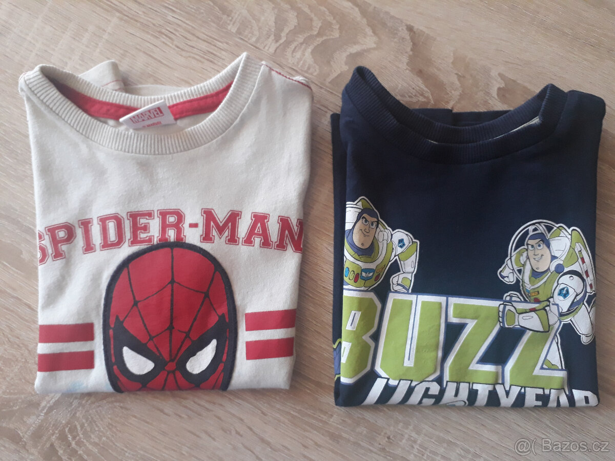 na tričku se spidermanem flek, který nejde vyprat. Nejlépe na donošení na doma. Buzz tričko nové, velikost 98/104